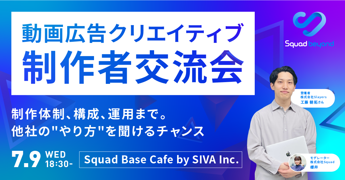 登壇者には、動画広告領域で活躍する株式会社Slayers 工藤朝拓氏をお迎えし、制作の裏側についてインタビュー形式でお話を伺う予定です。また、後半には参加者同士の情報交換タイムもご用意しています。